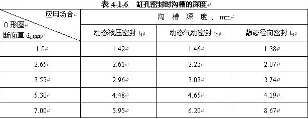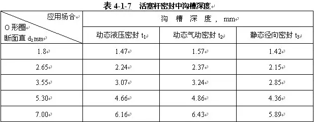 因为O形橡胶密封圈是安装在各种沟槽中使用,现将安装沟槽情况列于表4-1-3。