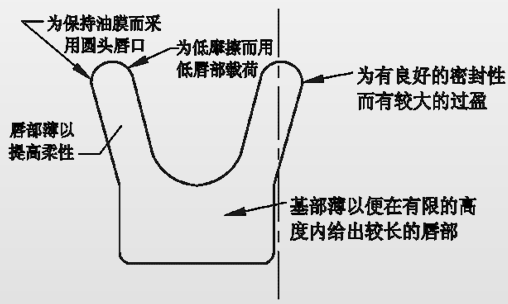 适当配料并以比较软的橡胶制成的U形密封圈能提供特别好的密封性,而且在低压下摩擦力小。希望的特点是唇部薄,以响应压力加载,长度大,以便有良好的柔性,唇部本身设计成有较小的唇部负载,以便摩擦力小,与此同时,有足够的接触面积和预载荷,以便密封良好。方拐角断面也受欢迎,可以减少拐角磨损和“咬伤”(图1)。