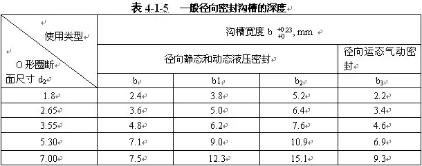 轴向密封沟槽宽度和深度;轴向密封沟槽宽度和深度见表4-1-8
