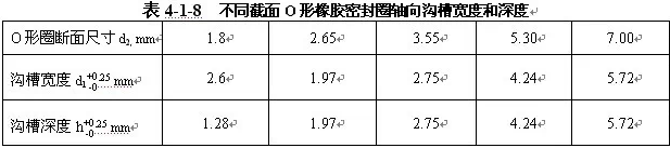 因为O形橡胶密封圈是安装在各种沟槽中使用,现将安装沟槽情况列于表4-1-3。