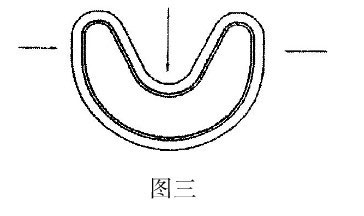 2.将聚四氟乙烯环压成肾形并且不得形成尖形弯曲。(见图三)